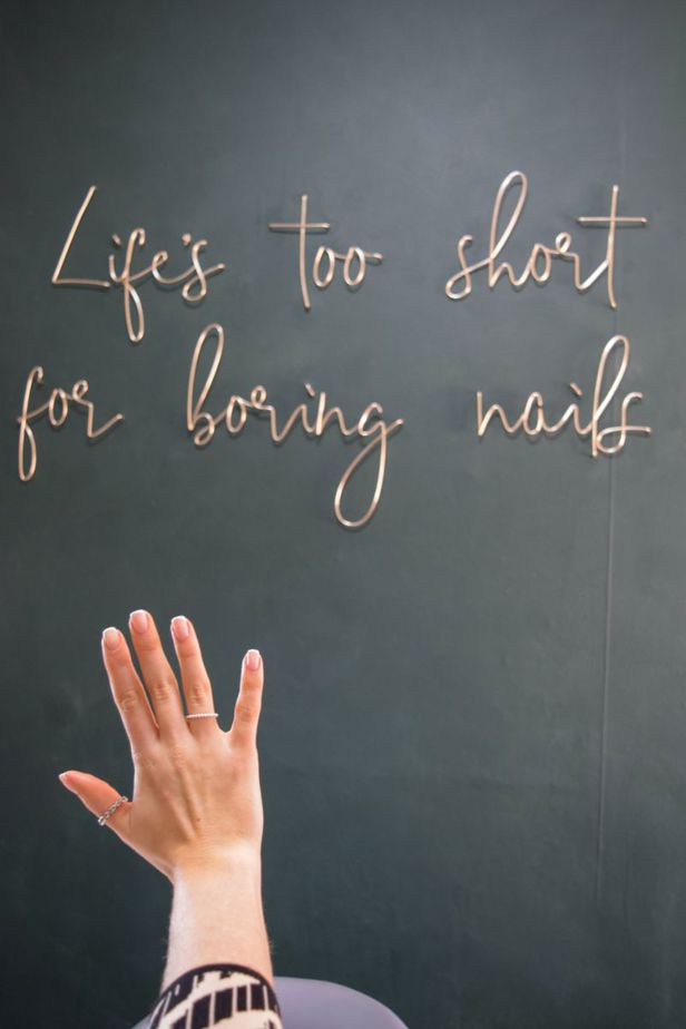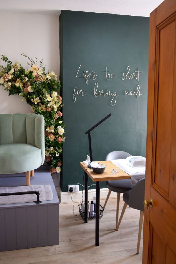 “I think my favourite part of the décor is my hand made wire words ‘Life’s too short for boring nails’. I feel these really are words to live by and encourage myself and my clients to push my creativity.”