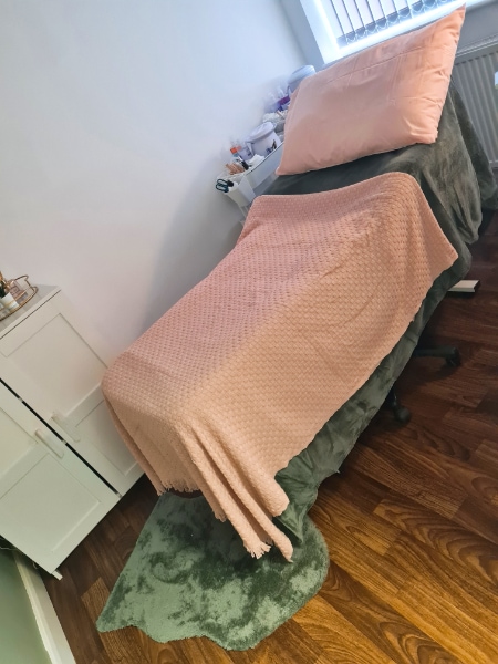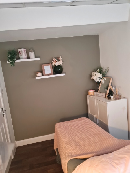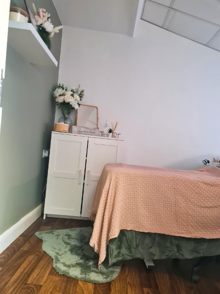 “When creating this space for myself and my clients I knew I wanted it neat, tidy and comfortable. I spent hours searching for the perfect chairs for our clients, days researching daylight lamps and I went around a number of different stores searching for the right shade of pink towels. I feel completely comfortable with this area we have created.”