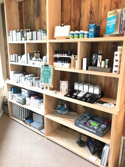 “We’ve used creams and dark greens to give a relaxing feeling and tried to avoid too many bright colours. We’ve also cherry-picked more rustic farmhouse pieces to furnish the salon, including lime washed wooden nail bars, leather chairs for pedicures and wooden shelving for our retail area.