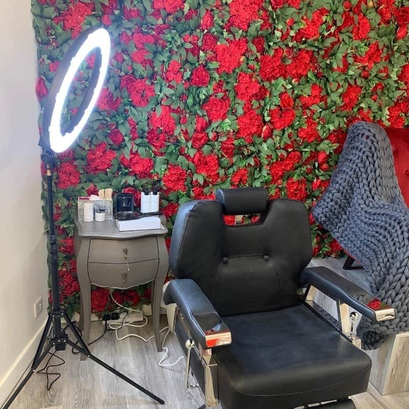 “When the flower wall arrived I was so worried! It was so different from all the pretty pink salons that surround mine, but once it was up I was in love and there was no stopping our red rose theme. I found a local florist to make us the most beautiful door arch for the main branch and a rose trail under the sign in the Bridge of Don branch. Now everyone comments on our very different but beautiful colour choice.”