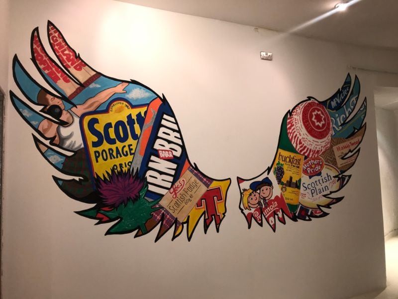 “As you make your way to the back end of the salon, we have so many cool wall features to look at – the Trainspotting quote at the makeup waiting area, quirky paint splashes on the three makeup walls, and a patriotic set of angel wings hand painted by the very talented @Devoartrocks on Instagram.