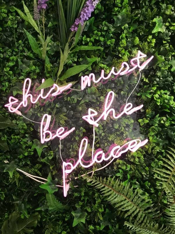 With such a range of treatments available in the salon, Sarah sought out a diverse décor to match. “There isn’t really a main theme!” Sarah laughs. “It sounds so strange when we explain to people, but it really is a place to come and experience for yourself to see what we mean. We wanted it to emulate an Alice in Wonderland type of feel. When you enter the salon, you are greeted with a bright and fresh salon with a fun atmosphere. There is a chic, funky furniture in the waiting area with the dictionary description for the world ‘bold’. The nail station features pops of neon. And of course, the foliage wall catches everyone’s eyes!