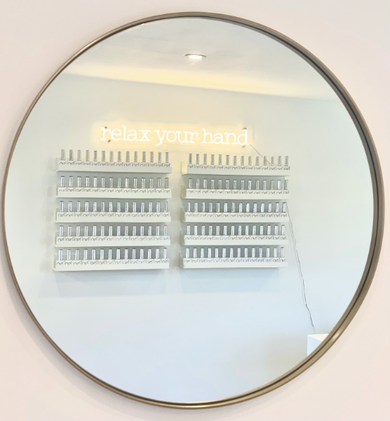 “I wanted to add a few quirky bits too, including my ‘relax your hand’ neon light I had made, as I am constantly saying it to my clients!
