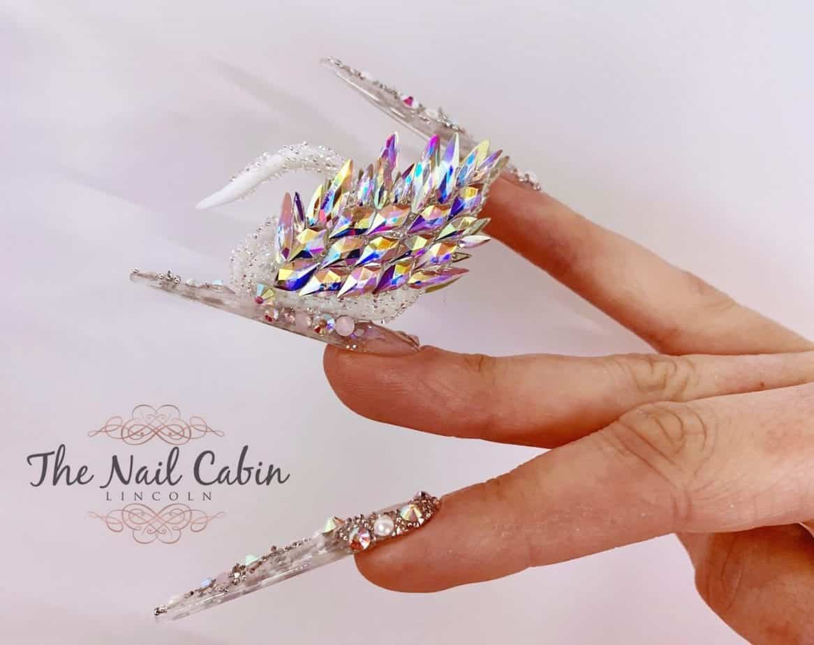 “I was really nervous before Nailympia London 2019 and didn’t sleep very well for a number of days,” admits Simone. “I didn’t really know what to do for this category and one night at about 3am it just came to me – I had to do a swan! The next day I started thinking of how I wanted it to look and what I could do to achieve it. I knew I wanted it to be completely over the top so I ordered loads of crystals and had a go.