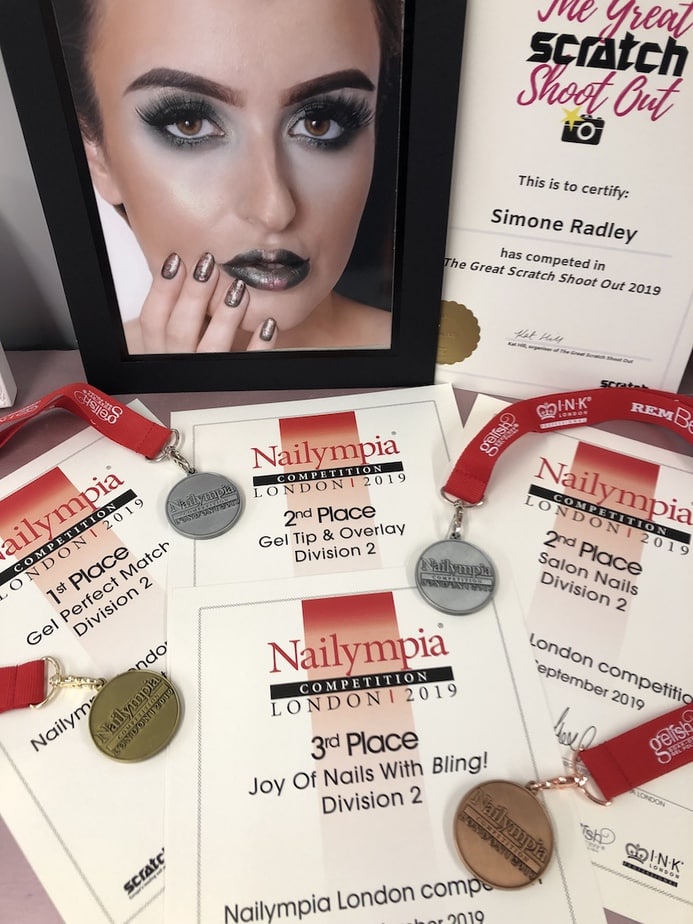 After placing at Nailympia London 2019 in Salon Nails (2nd place, Division 2), Competition Pink & White Gel Tip & Overlay (2nd place, Division 2), and Gel Perfect Match (1st place, Division 2), Simone shares her top tips for each: