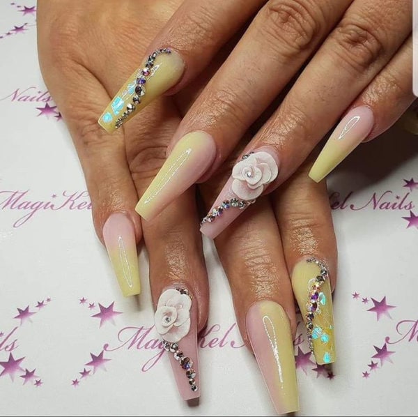 Kelly leans towards long nails with a bit of bling. “I love Glitterbels’ acrylic products and The Gel Bottle Inc for my polishes. I love fancy designs! I’m just a small nail tech that’s at the beginning of my nail career, so I’m pleased every time I do clients’ nails and they go away very happy. I’m also excited to be appearing on Scratch’s website!”