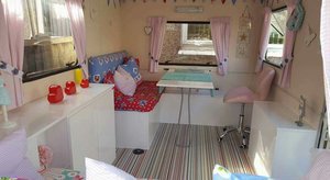 I worked from inside my home for a few years while my children were young but there came a point when I needed my own space to work. I looked into working from a conservatory or summer house but then my partner came up with the idea of turning a caravan into a nail studio. It’s located in my back garden and works brilliantly. My partner David did all the hard bits and my mum helped a lot by making the curtains and cushions. We managed to finish the renovation within two weekends.