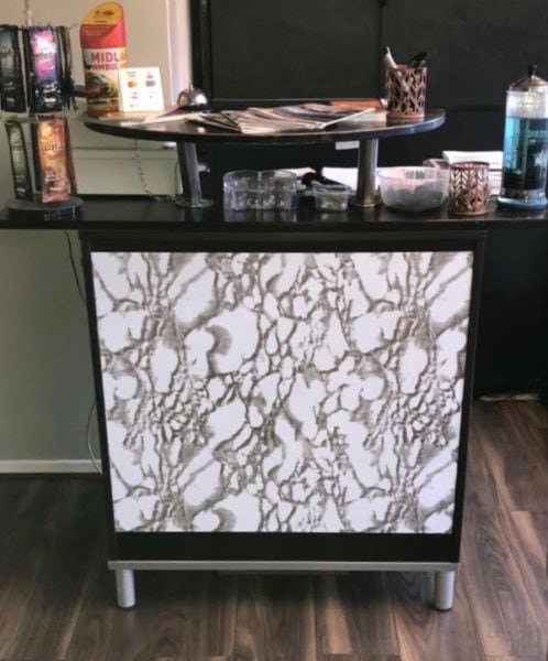 All in all, I ran out of savings so I had to buy stock and add finishing touches on a week by week basis and started upcycling. As funds were pretty much gone, I had to sacrifice a few new things. I needed a new nail desk, so looked on Facebook Marketplace and I found the biggest bargain of the year, which I’m still buzzing about. I managed to get a Dual REM Concord nail station with integrated dust collector system, air filtration unit, vapour control system, with multiple integrated plug sockets for £100! YES! £100! I literally could not believe my eyes when I saw it! I knew exactly what it was. It wasn’t advertised as what is was, it was just advertised as a ‘nail desk’. The tech selling it just wanted rid as she didn’t have the space and it was sat at the back of her parent’s garage. It matches my flooring exactly and it’s just perfect! I LOVE IT!