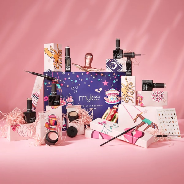 Ideal for pros looking to expand their winter nail art offerings, unwrap gel polishes, gel pots, reflective gels, brushes and stickers with The Winter Carnival Collection Advent Calendar by Mylee, featuring two new gel polish shades for the festive season and beyond.