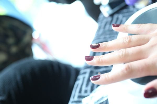 - Apply two coats of Gelish in Black Cherry Berry, curing between each coat.