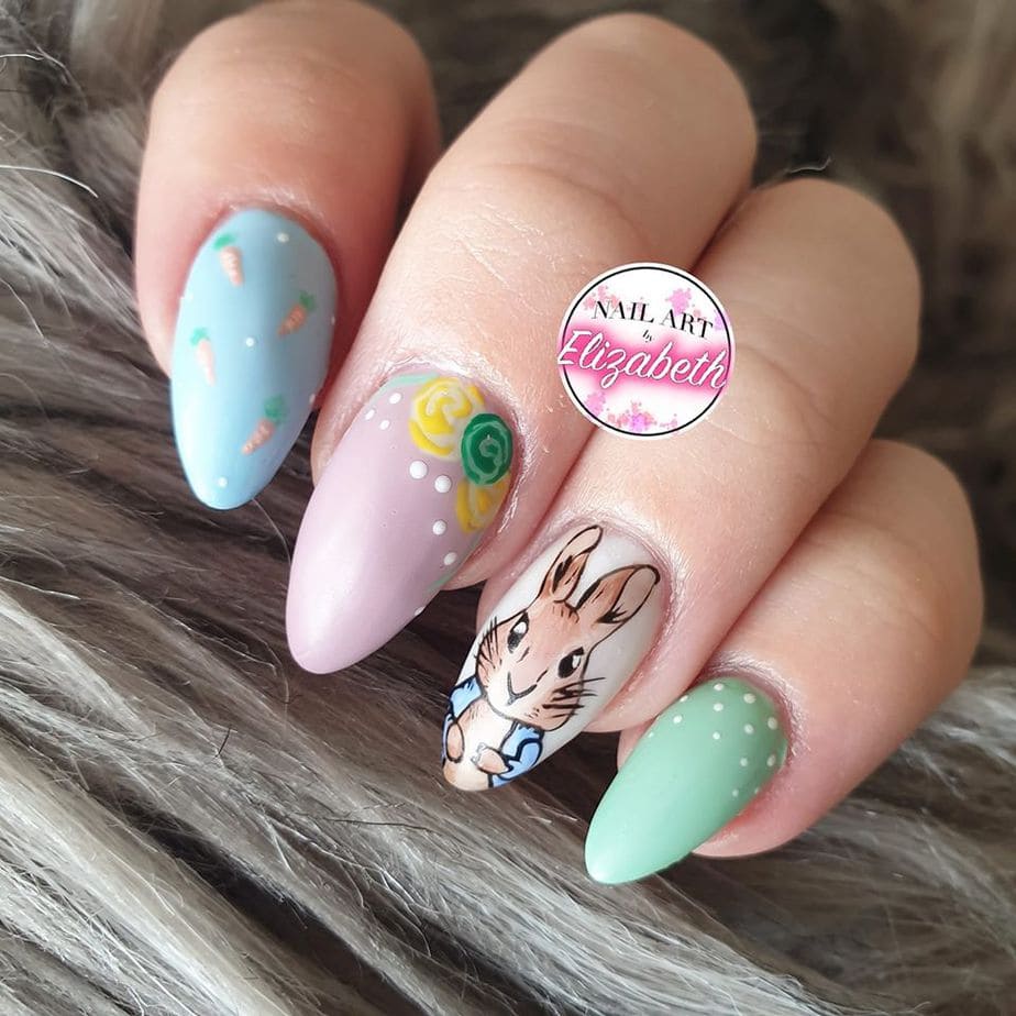 “My inspiration for this nail design was the illustrations from Beatrix Potter and the Tales of Peter Rabbit. I absolutely loved these stories as a child and I enjoy that my children have discovered the stories, too. Who doesn’t love easter stories during spring?