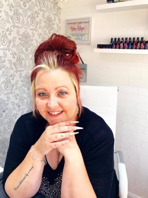 “For the index finger, I applied a layer of Crystal Clear then applied Birthday Suit at the tip blending up, then applied rose multi dipped in Crystal Clear at the cuticle blending down, before capping in Crystal Glass. I top coated in CJP No Wipe and finally applied a 3D rose using Snow White.”