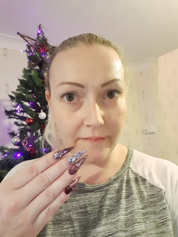 “These are my Christmas nails! I really wanted to do a purple set, so I chose the colours and let my imagination do the rest.