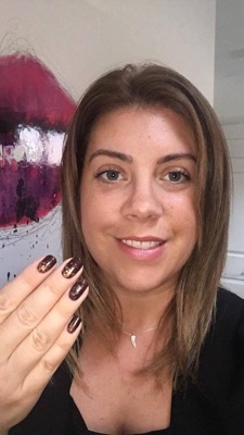 “To create this look, I started with Gelish colour, Seal the Deal,” Lydia reveals. “I then used some foil nail art on the tacky layer. To get the desired effect, I used a cuticle stick to break it up and move the pieces around the nail. Once I was happy, I then top coated twice.