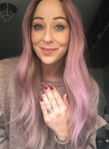 “I needed some pretty nails for my 40th birthday weekend away and, after doing one set that I decided weren’t quite right for the occasion, I eventually decided on dark red and glittery.