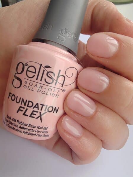 Foundation Flex contains a blend of monomers in the base coat, which cures to a softer consistency with rubberised characteristics, filling in imperfections and ridges and acting as a sticky base when used with Gelish gel polish.