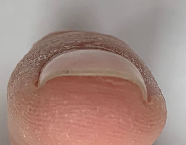 When you hold something black around the C-curve such as black gloves then this makes this imperfection much easier to spot. Another great truth teller for flaws, is looking through or taking a photo of the nail. The camera never lies and shows all mistakes. You can then see these and correct them before moving on to add colour or art to the enhancement.