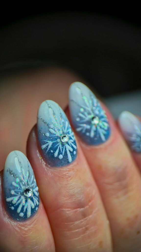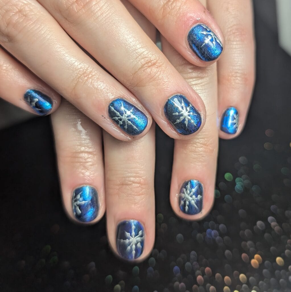 “Kellie’s use of encapsulation added beautiful depth and dimension, while the inclusion of crystals introduced an extra layer of interest. The image was well photographed, with a clear focus on the nails, allowing the attention to detail in this style to truly shine.”