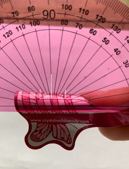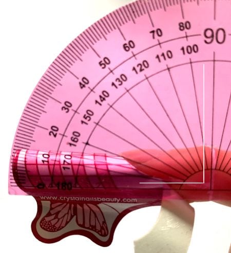 To know if your ruler and in turn an almond or stiletto nail form fit is tilting down, you will see an acute angle. The degree of this acute angle will alter depending upon the length to achieve.