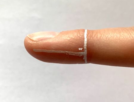 From the birds-eye view, we use the same part of the finger to measure a straight line and correct a crooked finger.
