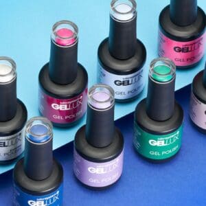 Salon System nail expert & owner of The Nail Fairy, Caroline Roberts, demonstrates how to recreate this colourful abstract nail style using Gellux shades, available via wholesalers nationwide.