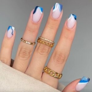 Blue abstract French tips