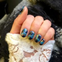 Salon System nail expert, Julie-Anne Larivière, created a teal tortoiseshell look using Gellux…