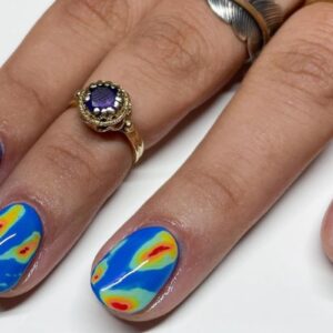Switch on the weather channel and heat up your nail art game with heat map nails, pulling inspiration from multicoloured geothermal maps to create this colourful layered nail look. Check out our roundup of 15 thermal-themed reader designs…