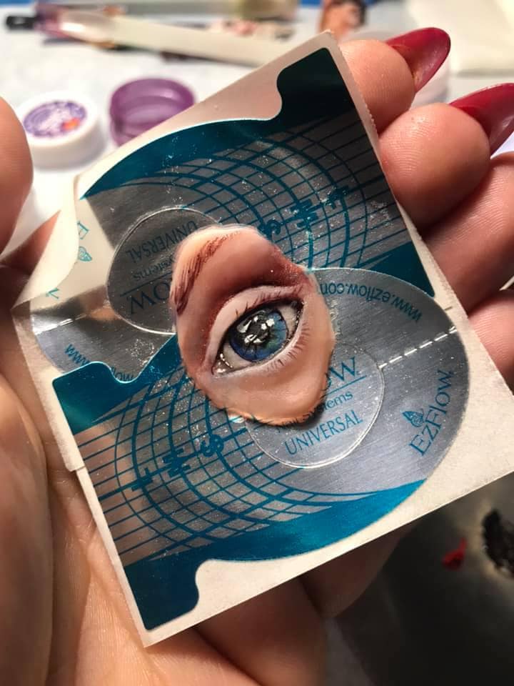 Mixed media nail tutorial by Elena Maltseva: eye nail art