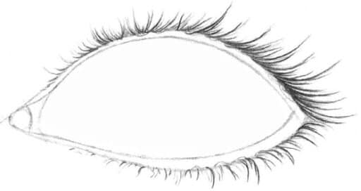 You’ll notice that the eyelashes seem to be in the air. The secret to this effect is a thin layer of clear acrylic and a matte gel polish no-cleanse top coat between the eyelid and lashes. Don’t create too many lashes, and don’t paint them too close together, too parallel or too thickly. Your brush strokes should move from thick to thin.