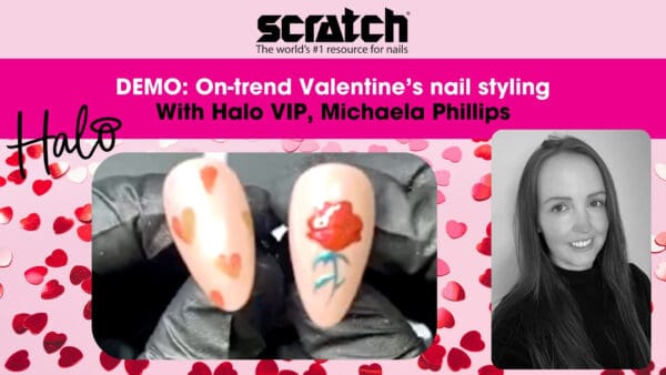 Halo VIP, Michaela Phillips of Kent home salon, Gelalicious, shares how to create two gorgeous chrome designs for Valentine’s Day. Halo products are available via www.purenails.co.uk