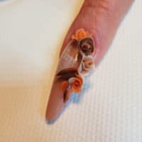 Recreate this 3d floral look by Lisa Dunlop using Cuccio’s Ultra Clear Monomer and the Nudecrylics range…