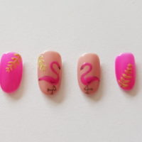 Salon System nail expert, Karen Louise, creates a fun summery look featuring pink flamingos using Gellux gel polishes, available from…