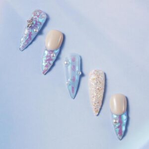 Choi Jiwoo, Jello Jello educator, shares how to craft this shimmering 3D style… Products used: Nail file, Jello Jello Peel-Off…