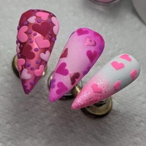Multi award-winning nail artist, Brigitta Fajt, shares how she created this trendy Valentine’s Day-ready style…