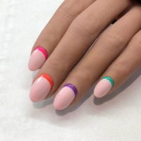 Offer a summer inspired twist on the classic French with this Rainbow Reverse French using Gellux from Salon System nail…