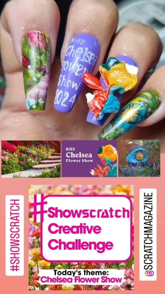 Check out entries to the 22 May 2024 nail art challenge from Scratch, in which techs were tasked with creating a design to fit the theme: Chelsea Flower Show.