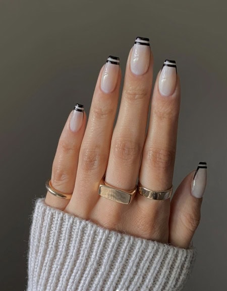The understated take on the classic French tip design has been all over our socials, flaunting the perfect ‘natural but better’ manicure. If your client isn’t allowed colourful nails at work, or is perhaps seeking a manicure which goes with every outfit, this trend offers a handy solution.