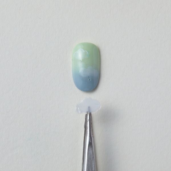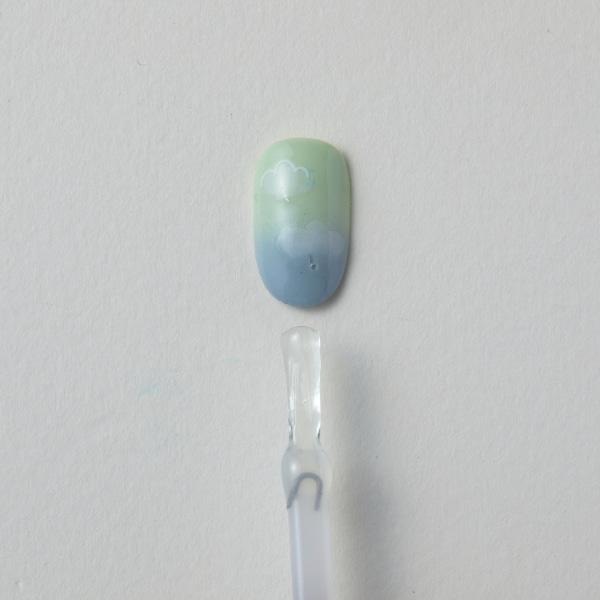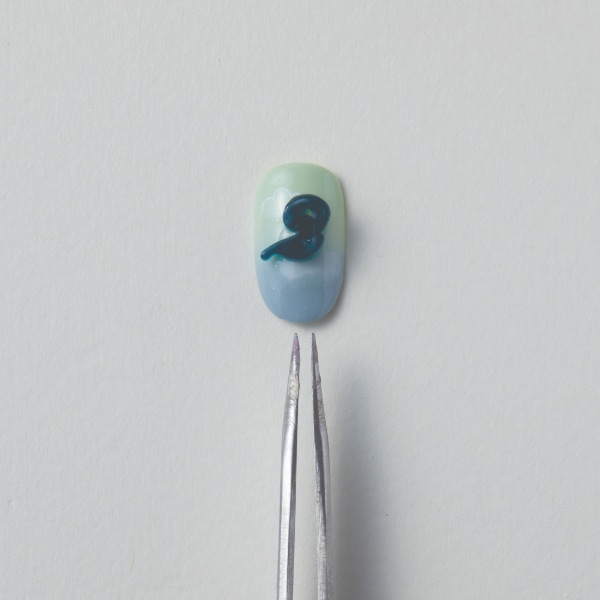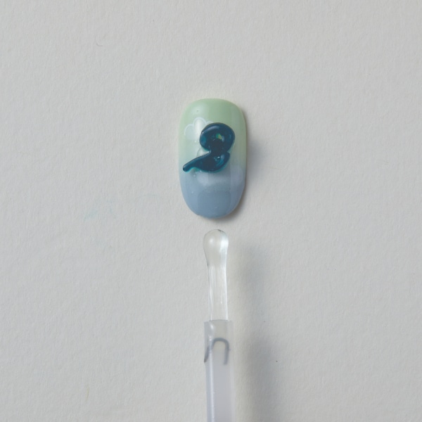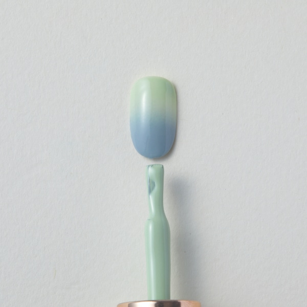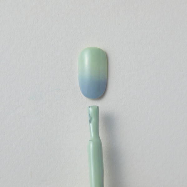 Using an ombré technique on the opposite end of the nail, apply a mint green gel polish and cure.