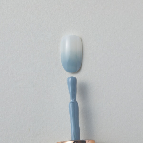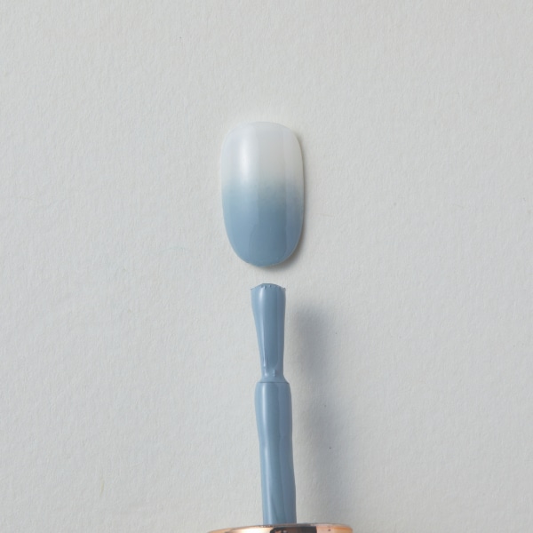 Apply a grey gel polish shade to the nail using an ombré technique and cure.