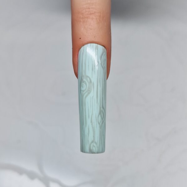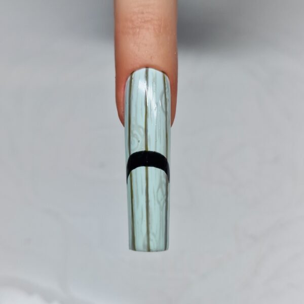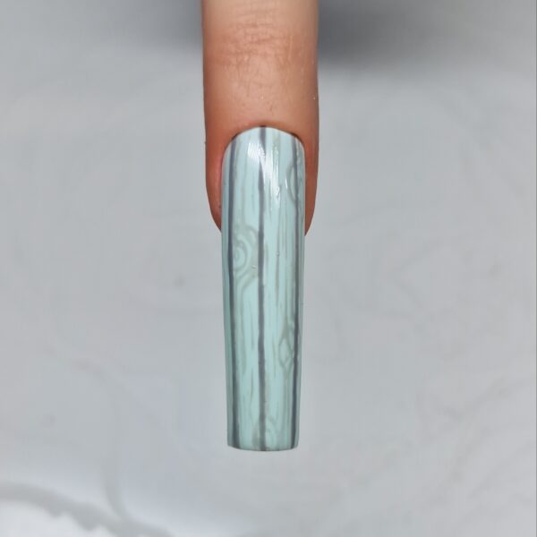 Paint vertical lines down the nail with a darker grey gel polish to finish achieving the wood effect, and cure.