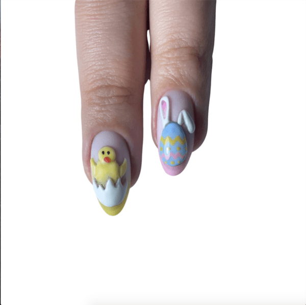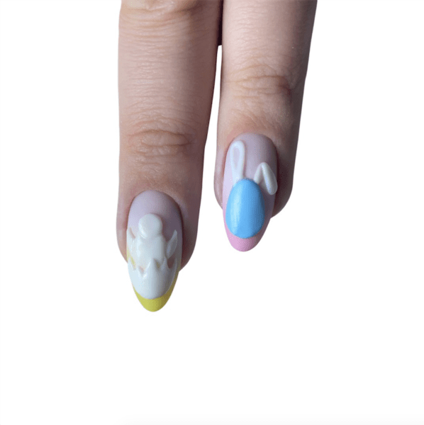 Pluck pastel hues from your kit and recreate this cute 3D Easter nail design courtesy of Dominika Satro, Indigo Nails UK educator.