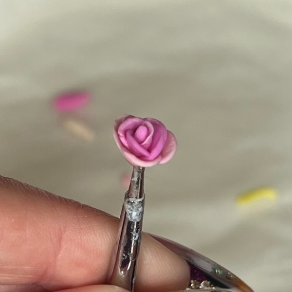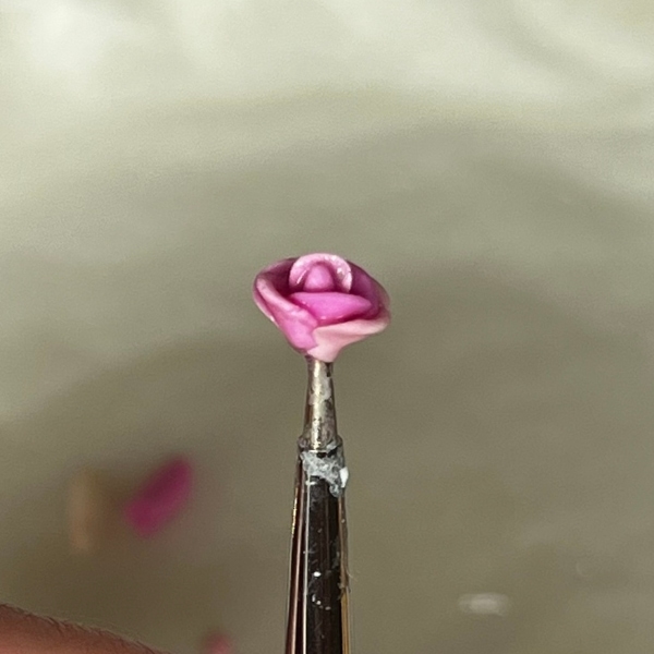 Keep working more petals in underneath the bud, using topcoat on the underside of the petals to help build a little strength.