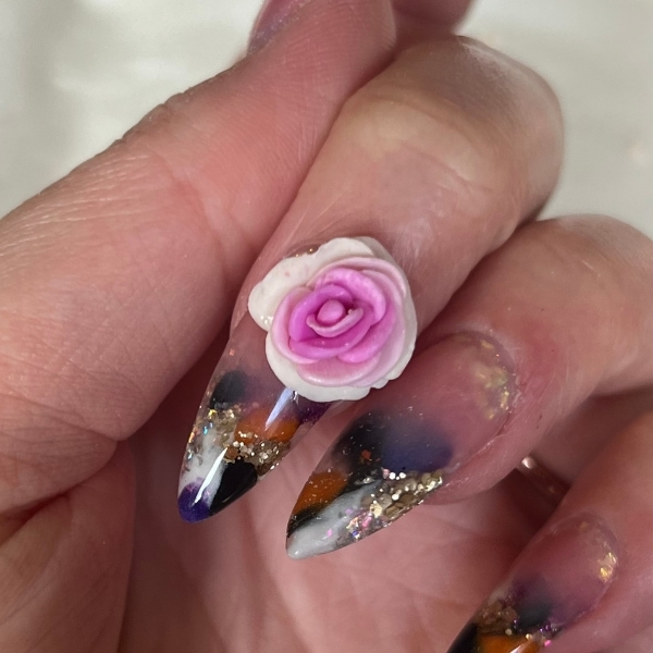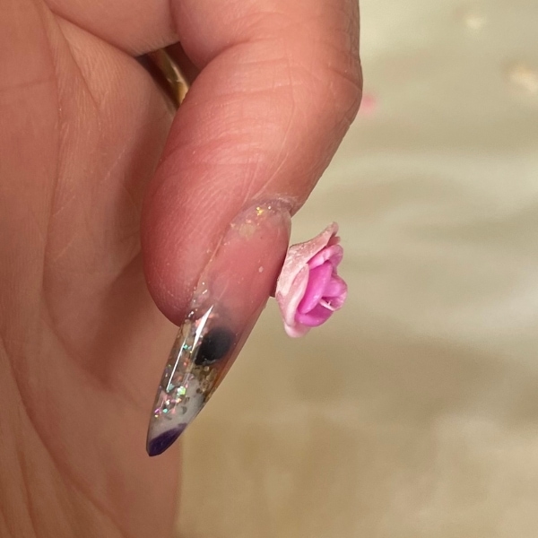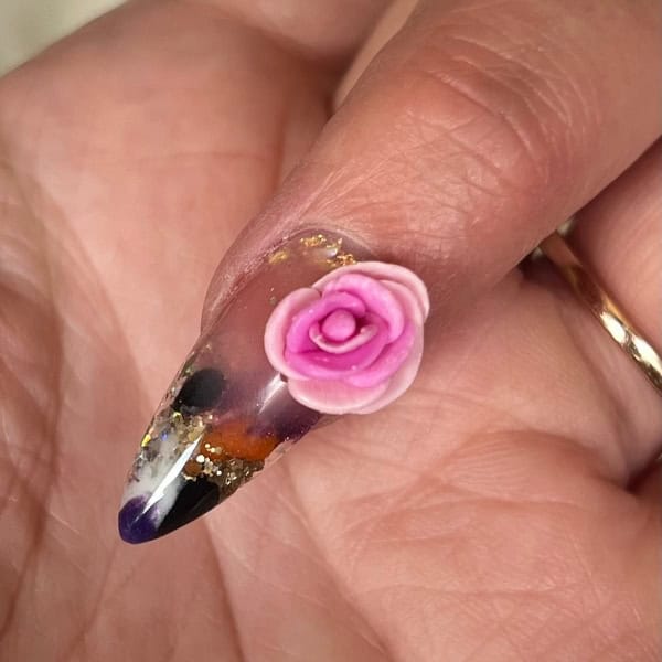When you have built up a couple of layers, pop off your flower and secure it onto the nail using a dot of acrylic to secure it in place.