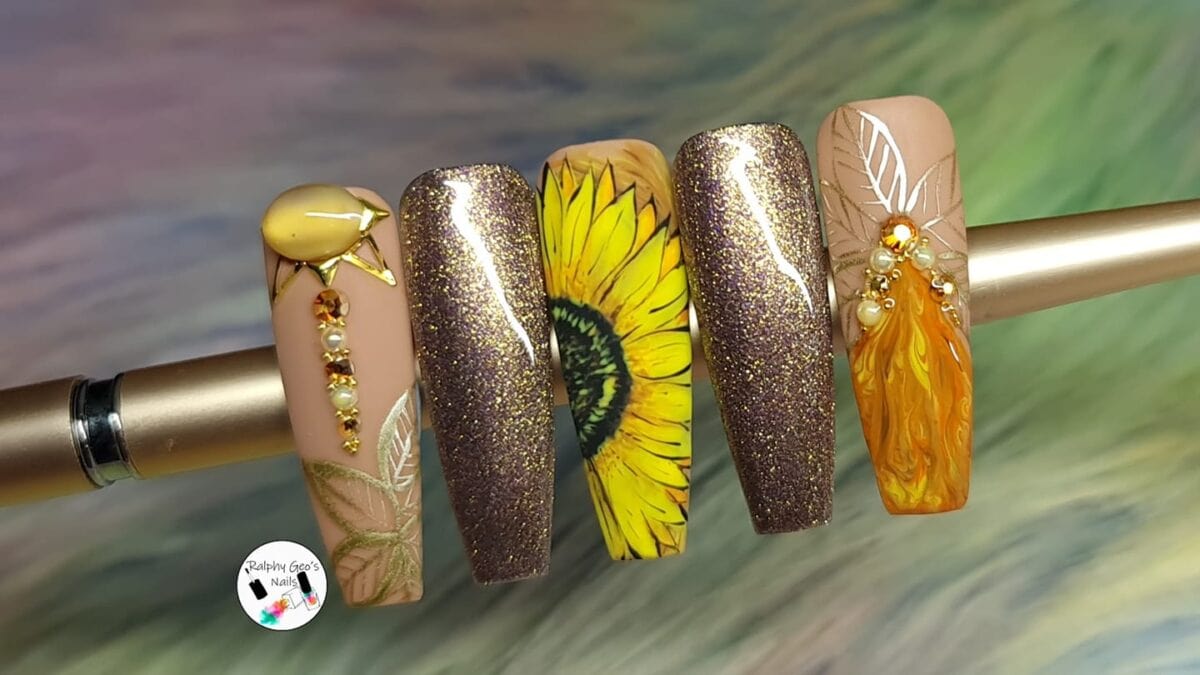 88 sunflower nail designs to brighten seasonal styling: #ShowScratch Creative Challenge