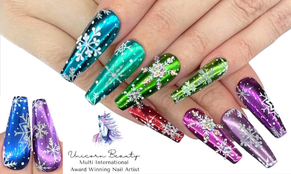 Check out entries to the 6 December 2023 nail art challenge from Scratch, in which techs were tasked with creating a design to fit the theme: Christmas Chrome.