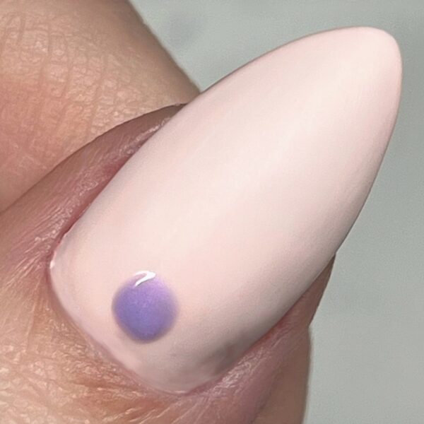 After applying Niña Bonita as the base, paint a medium-sized circle by the cuticle using Maraca Mama.