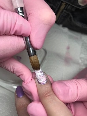 Amy Rickaby showcases a sliced agate design in Gelish tones and a nifty brush trick for perfect application…