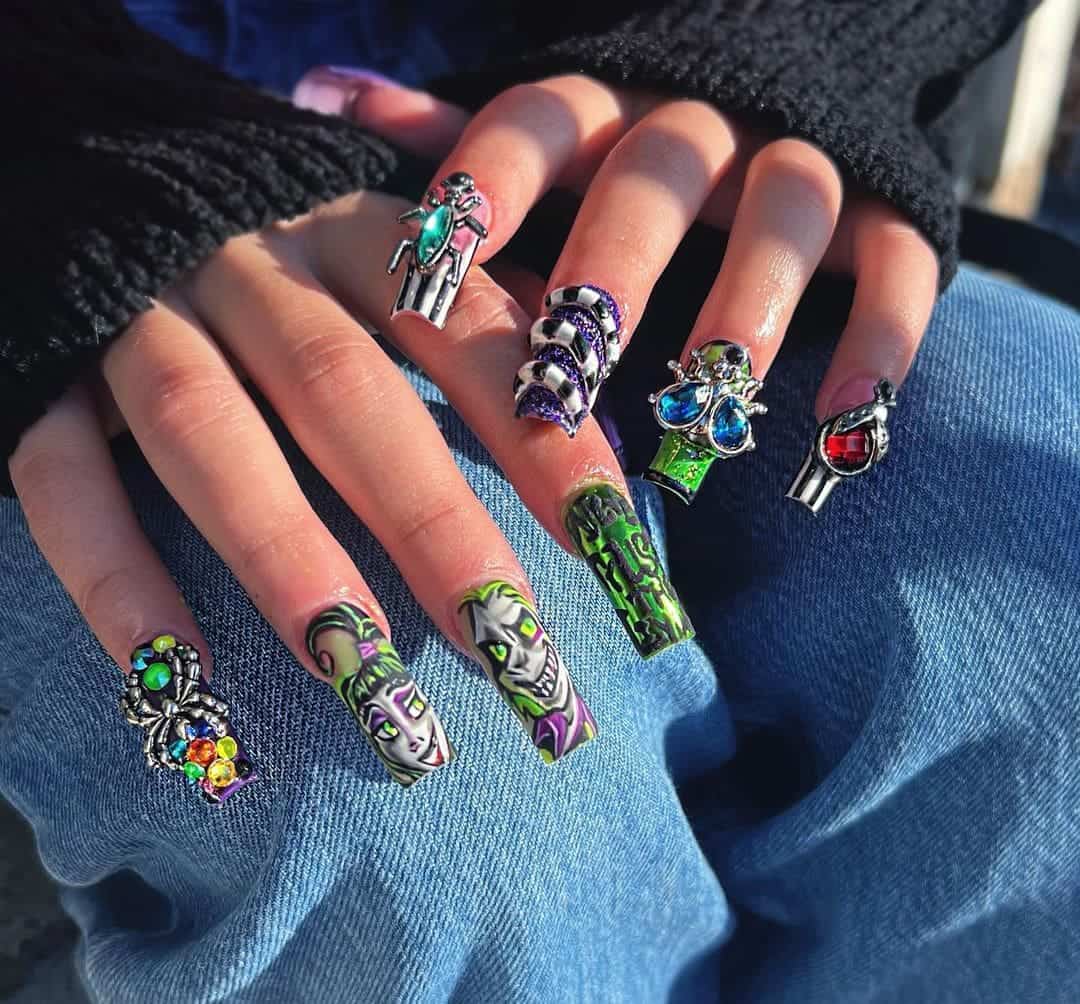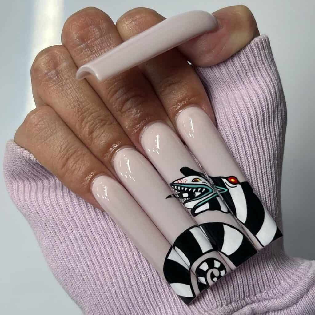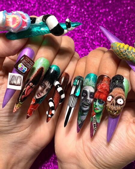With the Beetlejuice sequel, Beetlejuice Beetlejuice, released this month and Halloween on the way, take inspiration from these incredible themed designs by nail artists.