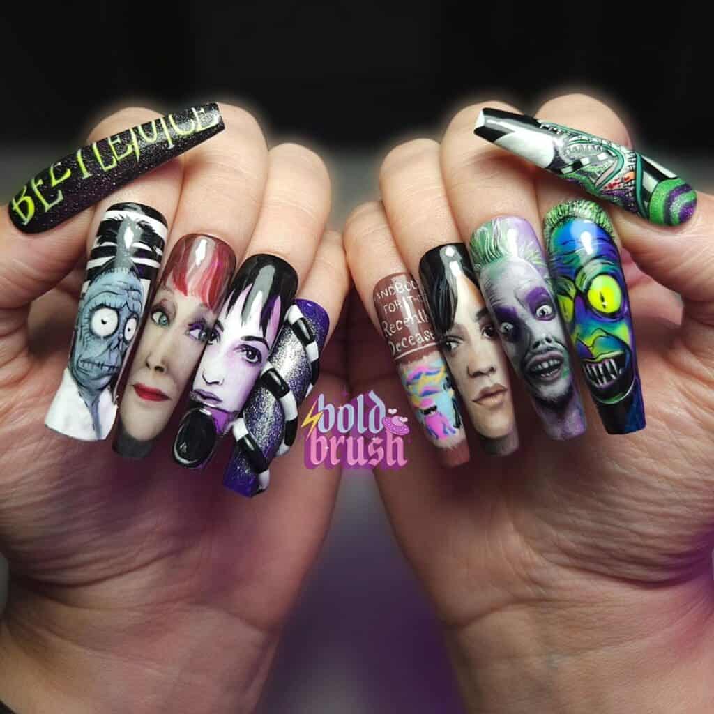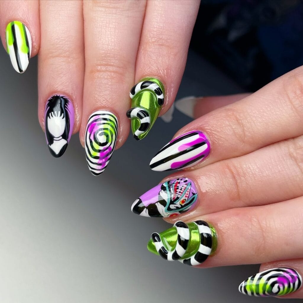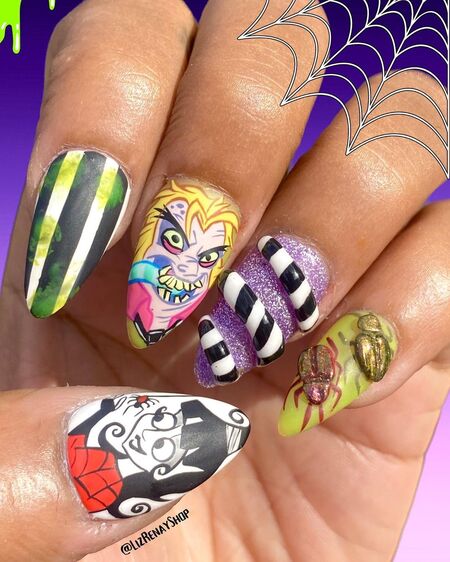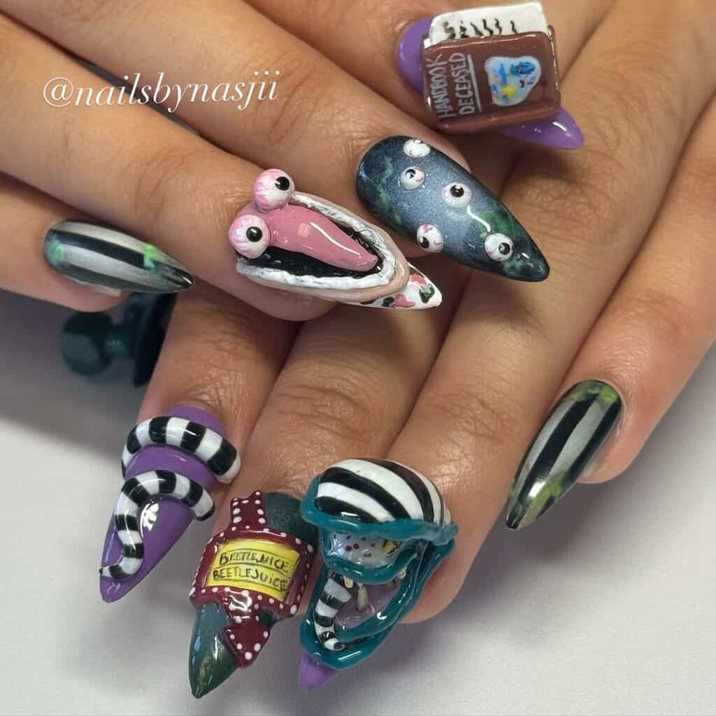 Beetlejuice nail art designs: 20 Halloween-ready manicure ideas